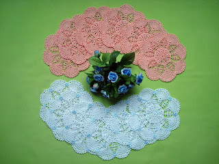 A teraz z przyjemnością prezentuję kolekcję małych serwetek. Serwetki wykonane są z białego i łososiowego kordonka Cable5, szydełkiem 1,25.
