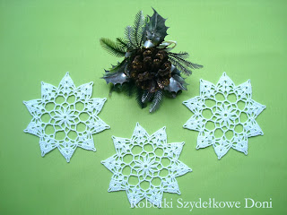 Na niektórych blogach już świątecznie więc i ja mam przyjemność zaprezentować kolekcję szydełkowych gwiazdek. Gwiazdki wykonane są z białego kordonka Cotton Filet, szydełkiem 1,50. Mogą być piękną ozdobą okien, witryn, stroików świątecznych jak i również ozdobą choinki. Dla zainteresowanych dołączam schematy.