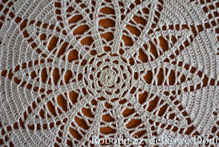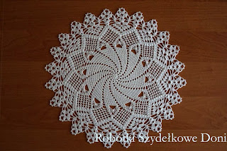 Dzisiaj mam przyjemność zaprezentować białą serwetkę, którą w ostatnim czasie wydziergałam. Wykonana jest z białego kordonka Cable5, szydełkiem 1,25. Średnica serwetki wynosi 26cm. Jest to kolejna serwetka do mojej kolekcji, która z pewnością będzie ładną dekoracją świątecznego stołu.