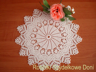 Kochani nie zaskoczę Was niczym nowym, na razie kończę obrus na zamówienie ale i mam w planach już nowe robótki. Dzisiaj chociaż mała, serwetka z mojej kolekcji, która leżała sobie gdzieś tam w kąciku. Serwetka wykonana jest z białego kordonka Stokrotka, szydełkiem 1,25. Schemat pochodził z bardzo już starszego zeszytu i niestety nie posiadam go już w swoim archiwum.