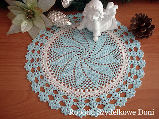 Serwetka w kolorze turkusowym wykonana z kordonka Maxi, szydełkiem 1,50