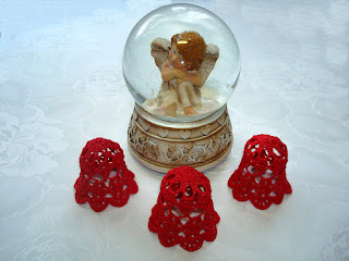 Święta zbliżają się małymi kroczkami i nowych ozdób ciągle przybywa. Tym razem chciałabym zaprezentować dzwonki szydełkowe w kolorze czerwonym wykonane z kordonka Maxi, szydełkiem 1,5.