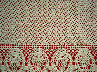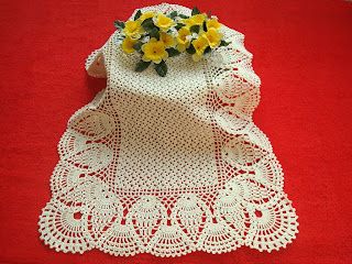 Bieżnik wykonany jest z kordonka  Snehurka, szydełkiem 1,25.