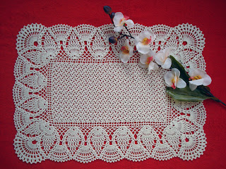 Tym razem z przyjemnością prezentuje szydełkowy obrusik z kwiatuszków, który zrobiłam jakiś czas temu. Obrusik wykonany jest z białego kordonka Maxi, szydełkiem 1,50. Wymiary obrusika to 150 cm na 91 cm. Wzór kwiatuszków już wcześniej prezentowałam, ale na mniejszej kwadratowej i prostokątnej serwetce.