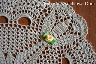 Ozdobiona jest małymi żółtymi różyczkami, które przyszyłam do rogów serwetki.